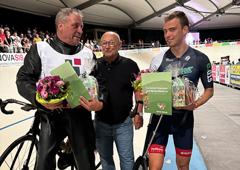 Am 03.05.2024 konnten wir auf der Veranstaltung Steherrenner von der Sparkasse Steher Grand Prix unsere Naturfleisch-Präsentkörbe an die Gewinner überreichen.